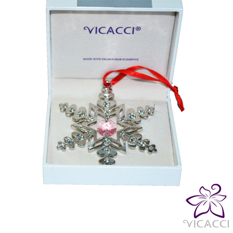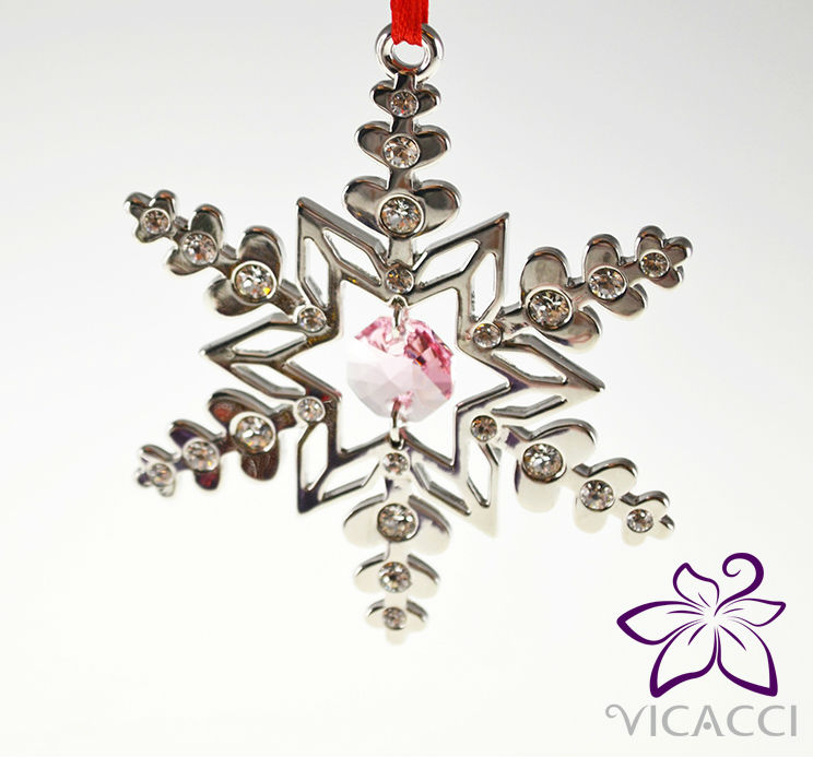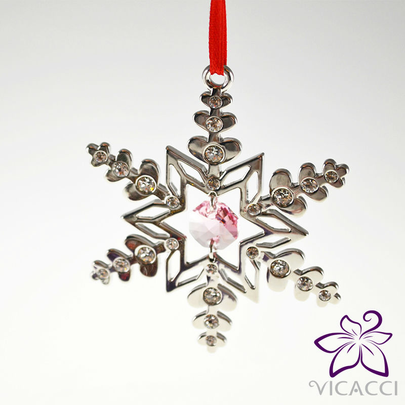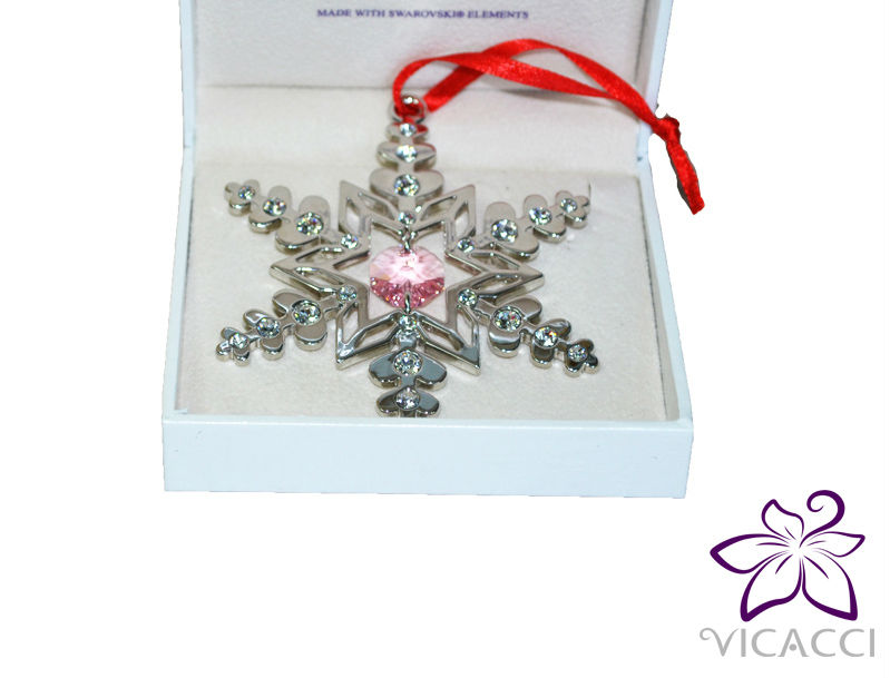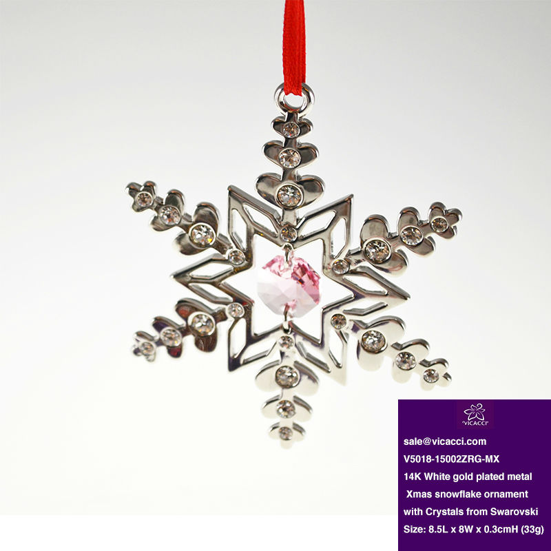• 14K white gold plated metal Xmas snowflake ornament with crystals from Swarovski.