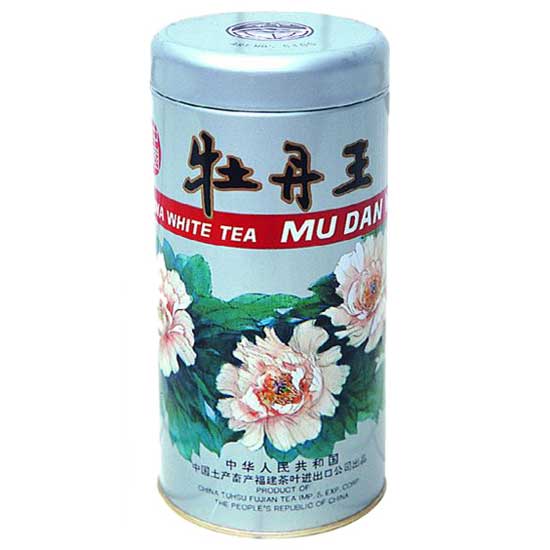 Presented is a can of peony white tea from Fujian, China for trusted quality. The white tea leaves come from the natural blossoming peonies. This tea gives an aromatic nose and a mouth of rich, refreshing aftertaste.