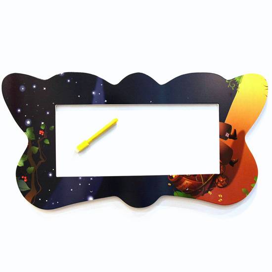 The whiteboard flaunts a unique design in a streamlined shape. It is magnetic and it allows teaching materials to be attached on the board. This white board is an essential art supply.