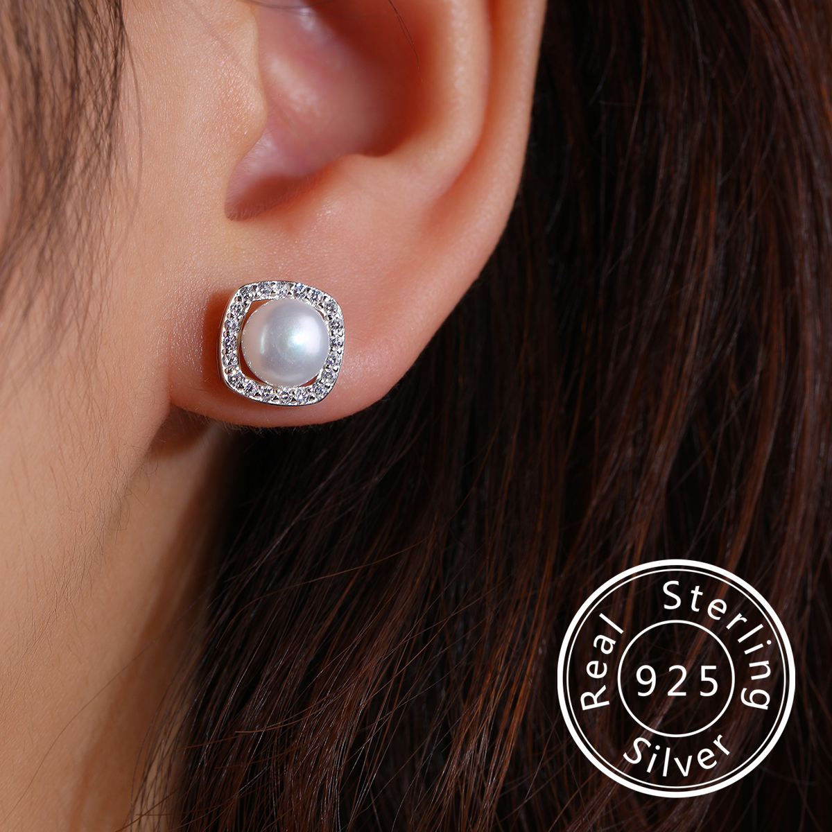 925 Silver with 7-8MM Freshwater Pearl Earrings