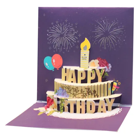 Wholesale Cartoon 90 Degree 3D Pop-up Birthday Cake Thank You Card Music-Playing Folded Postcard Gift Made Premium Paper Offset
