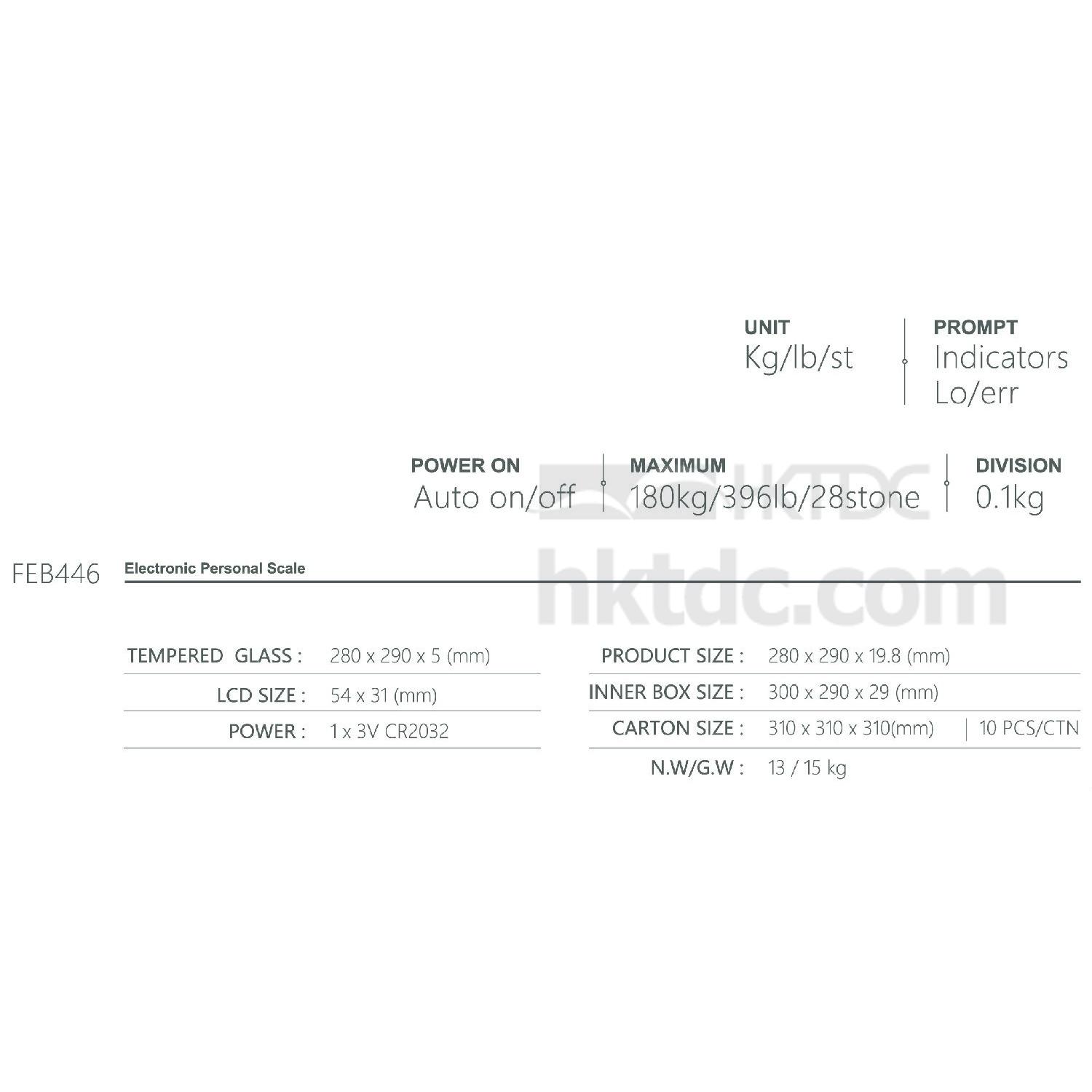 Bathroom Scale weighting scale with 180kg/400lb and 1.5-inch LCD Size,Toughened glass 280x290x5mm