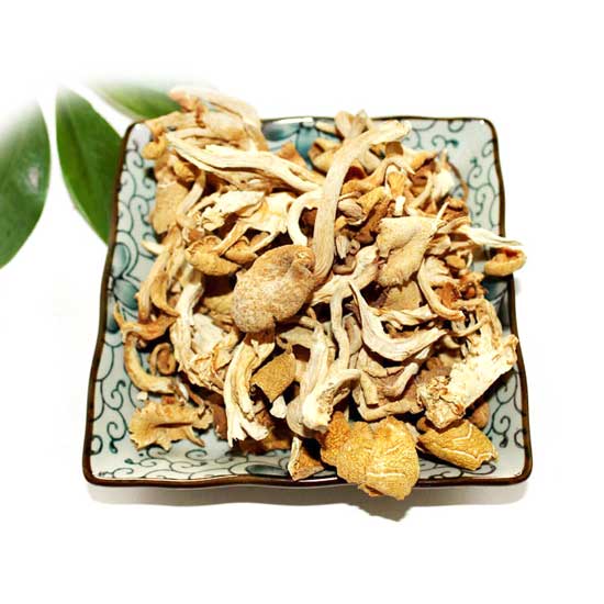 Displayed is a dish with wild mushrooms collected from the famous Changbai Mountain area. The unique humidity and temperature give the mushroom a soft and smooth texture and a delicious taste. This wild mushroom is great for many dishes.