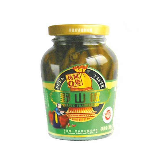 This is a bottle of wild peppers preserved in a traditional Chinese style. With a uniquely preserved method, this pickle delivers a spicy and natural taste. This flavorful pickle is a good side dish for white rice.