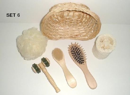 S-6 willow basket set included : Massager, Hair brush, Nail brush, Mesh sponge, Natural loofah & Oval willow basket