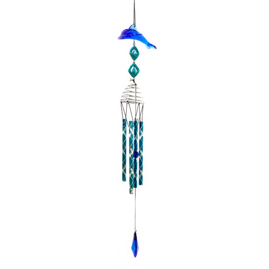 This is adorable wind chime that features dolphin ornament for a sense of attractiveness. The brightly-colored design creates a vibrant touch. This fancy wind chime delights users with crisp and lovely sound.