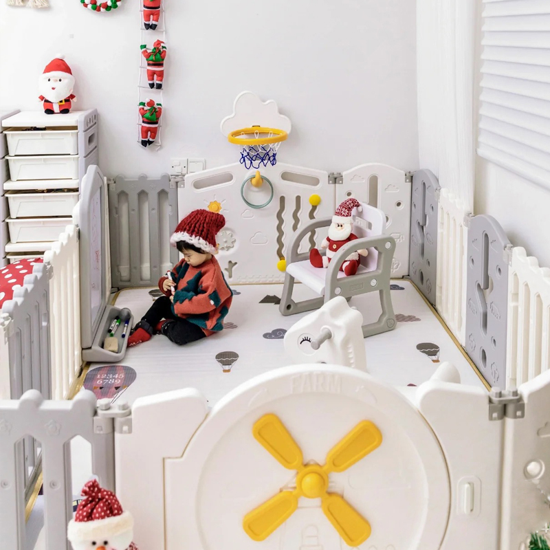 Windmill theme Kids Folding Fence Baby Playpen with Slide Swing Toys Play Yard Safety Plastic