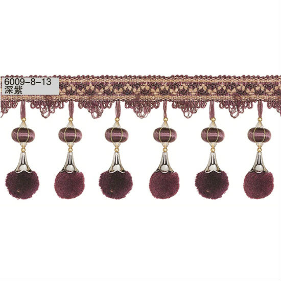 - Dangling pompoms with satin ball and funnel-shaped embellishments.