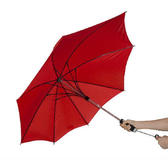 The umbrella is finely made of pongee fabric in red color. The umbrella is windproof and easy to open. The aluminum handles ensures it high durability and robustness.
