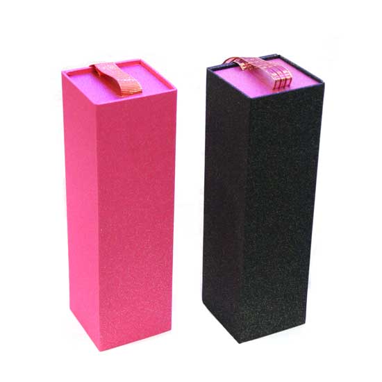 These exquisite paper boxes offer a grand way to package wine. The quality paper boxes boast sturdy construction. Each box can hold a single bottle of wine.