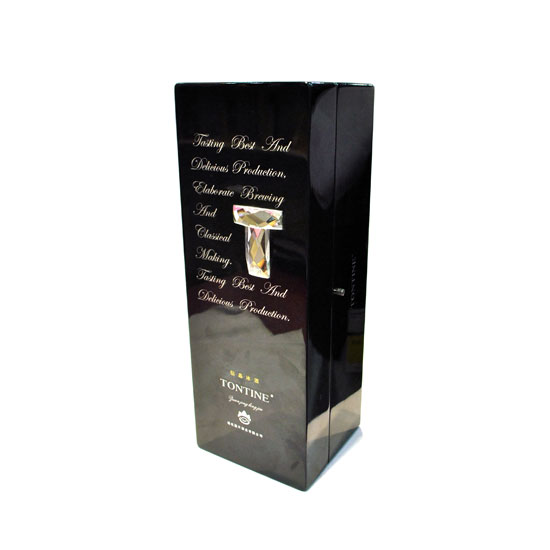 This is a wine box that comes in a black color for modern elegance. It features a simple yet decent design. The wine box is accented with English wording and logo prints for added style.