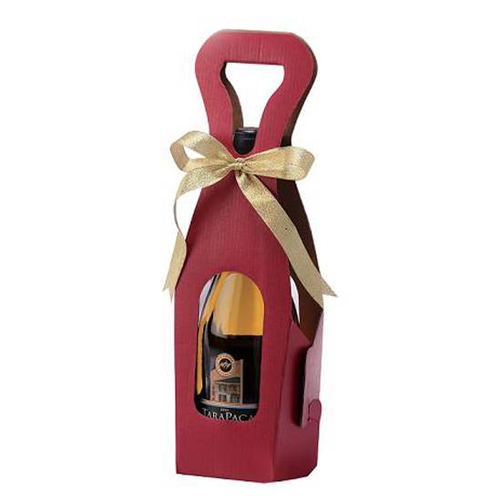 This is a paper gift box for wine. The box can accommodate one bottle as a time. A ribbon bow is included as decoration.