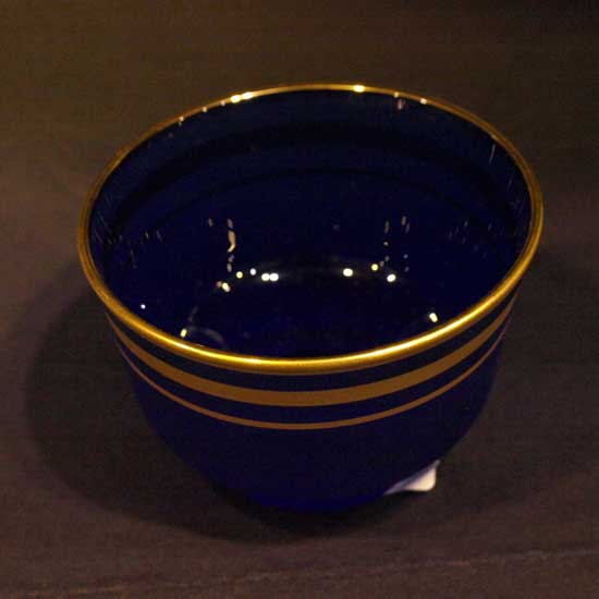 The wine glass bestows glamorous blue finishing accented with golden rims. The quality glass construction promises lasting durability. Add a distinctive touch to your bar with this delicate wine glass.