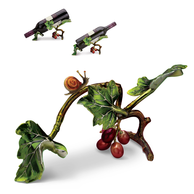 Featured is a wine holder that comes with a special appearance of a grape tree. The robust metal construction is nickel-plated for a more artistic image. Add an artistic flavor to a wine cellar with this decorative wine holder.