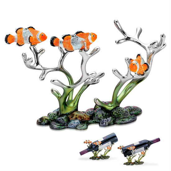 Three Clown Anemone fishes w/ coral reef