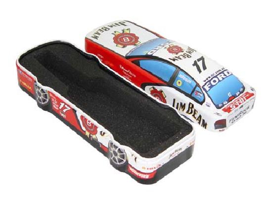 - Race car shape with full color printing, sponge inside & lift off lid.