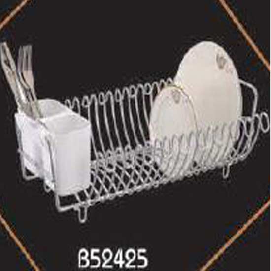 The featured wired plate holder comes with a twin utensil holding cup. It features four wired feet to prevent the holder from contact with excess water. This item makes an essential kitchen product.