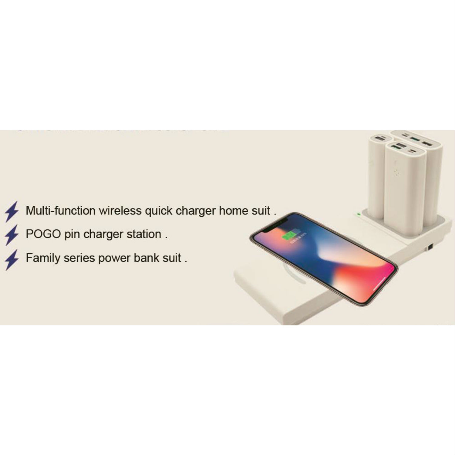 Juice up all your devices at once with this wireless charging hub. It connects to your phone with a set of pogo pins to build a secure linkage between your smart gadgets and the AC power charger. Three portable power banks installed neatly beside the wireless charging dock to provide instant power up for both iOS and Android phones.