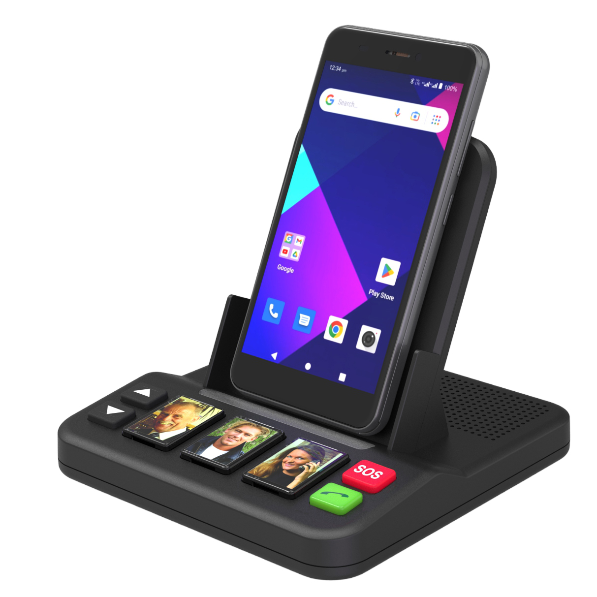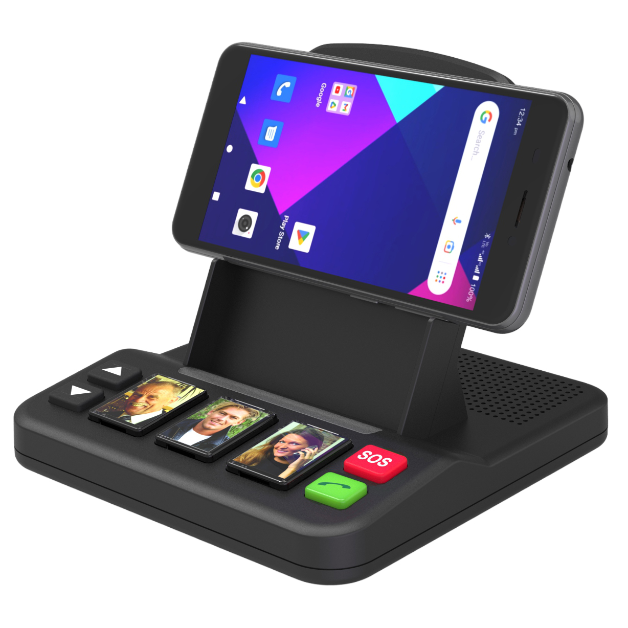 This simplistic wireless charging stand is designed with seniors in mind. Users can initiate charging by placing a smartphone vertically or horizontally on the stand. This charging stand includes three photo dial buttons for quick access, a rear speaker with adjustable volume, and an SOS emergency button to enhance safety.
