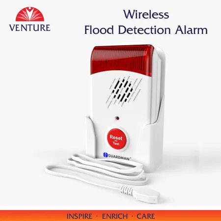 Any leakage of water will trigger this flood detector and alarm to emit loud and clear sound with a bright LED light alert. It is often placed where a potential leakage or overflow may occur. This water sensor alarm notifies homeowners or office workers of water leaks, while it is also able to transmit wireless signal to the wireless receiver.