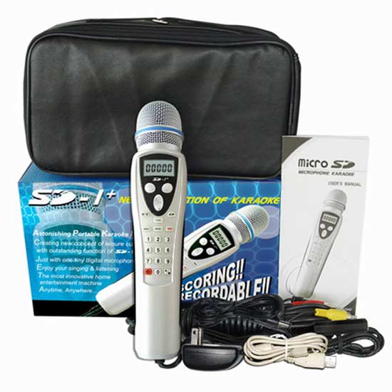 This wireless karaoke microphone records songs in MP3 format on SD cards directly. This system supports dual cable microphone and lets you sing along with your friends. There are 4 micro SD card slots supporting up to 64GB of capacity.
