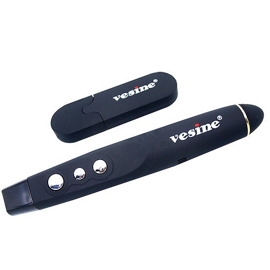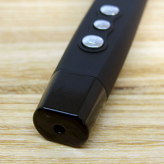 Shown is the red laser presenter in the shape of a pen. This laser pointer would be a great tool for presentation, allowing you to conveniently scroll up and down the page. Operate with only 1 piece of AAA battery, this laser presenter is handy and useful.