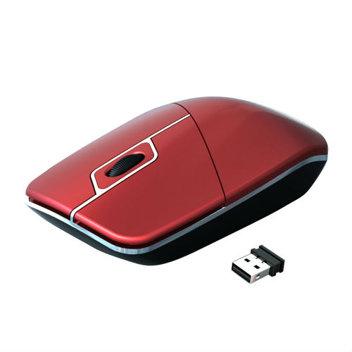 This wireless mouse features an ergonomic flat surface in a matte red finish. The wireless mouse offers you great computer navigation without hassle of wire. It is paired with a mini-sized hidden receiver for traveling user.