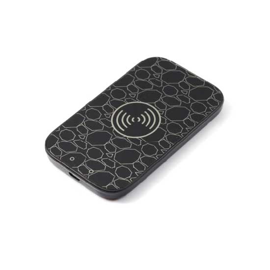 This wireless powerbank offers a convenient way to charging your mobile device. It boasts a trendy and elegant design in black with white patterns. The robust and rugged structure promises a long service life.