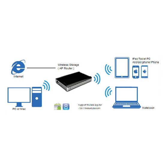 This mobile wireless storage allows you to carry your media library with you while on-the-go and wirelessly stream movies, photos, music and documents to your iPhone, iPad, Android tablets or smartphone. With integrated Wi-Fi and a big-sized design, this portable 2.5" HDD storage allows easy file sharing and file management on different platform devices. The high-capacity of space accessed wirelessly from your digital device and the contents can even be shared with two other people.