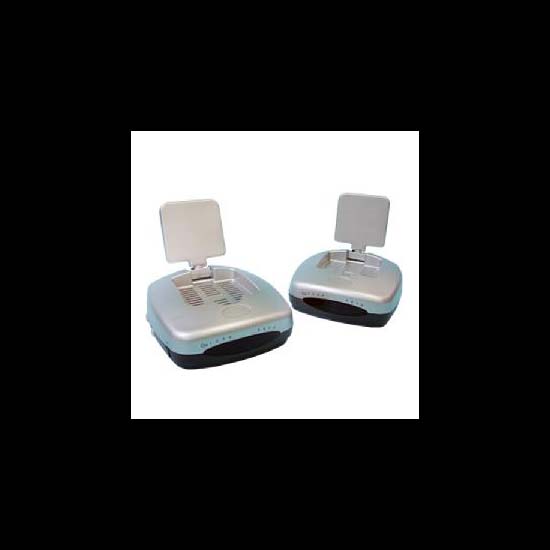The wireless transmitter and receiver pair supports both NTSC and PAL