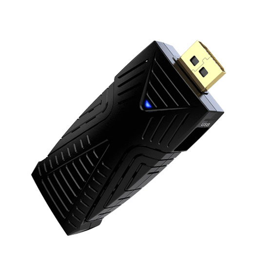 This featured WHDI stick can be inserted or embedded in a personal computer or a Blu-ray player for a more convenient use. Let the video and audio source data be transmitted from the stick to the receiver. It can transfer all the computer contents to the television directly. Thus, you can share the emails, photos and games to your family and colleagues.