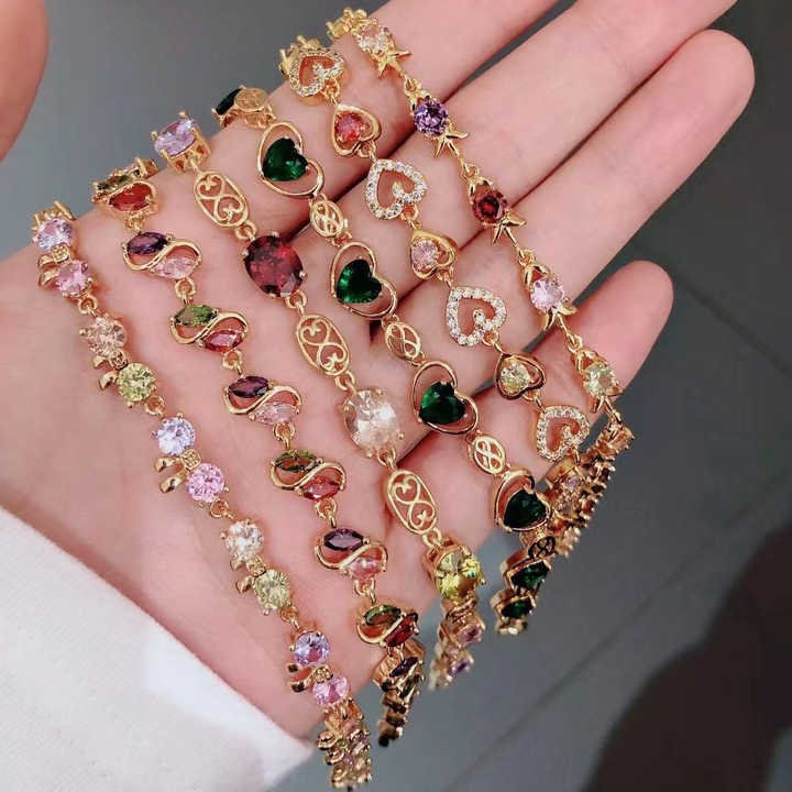 Women Heart Tennis Clover Pear Brass Bracelet