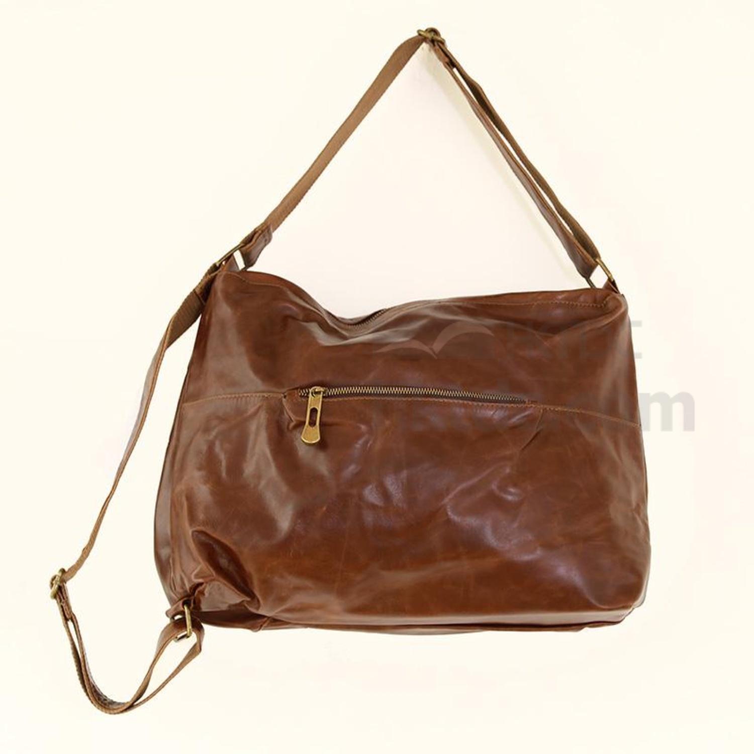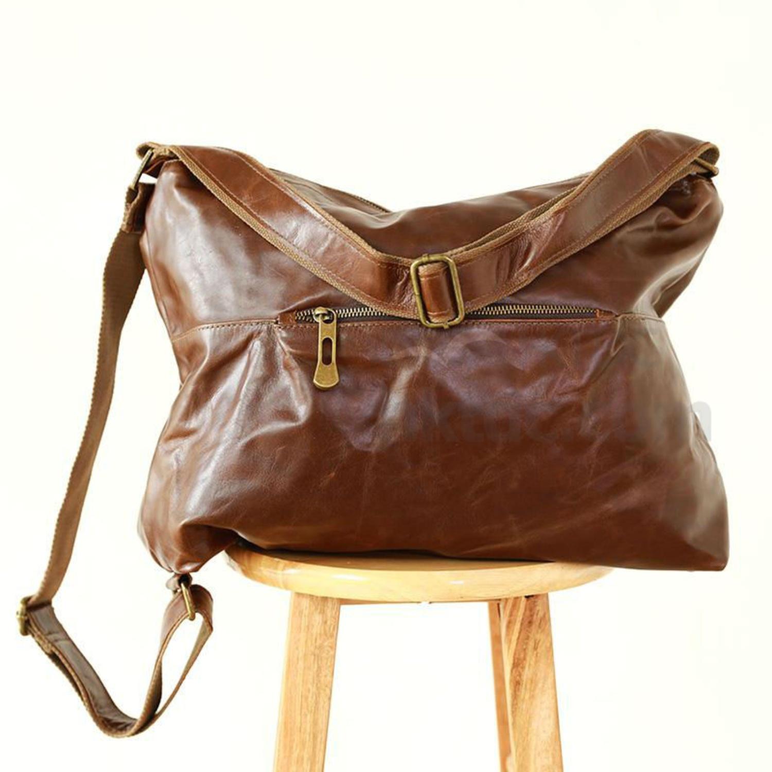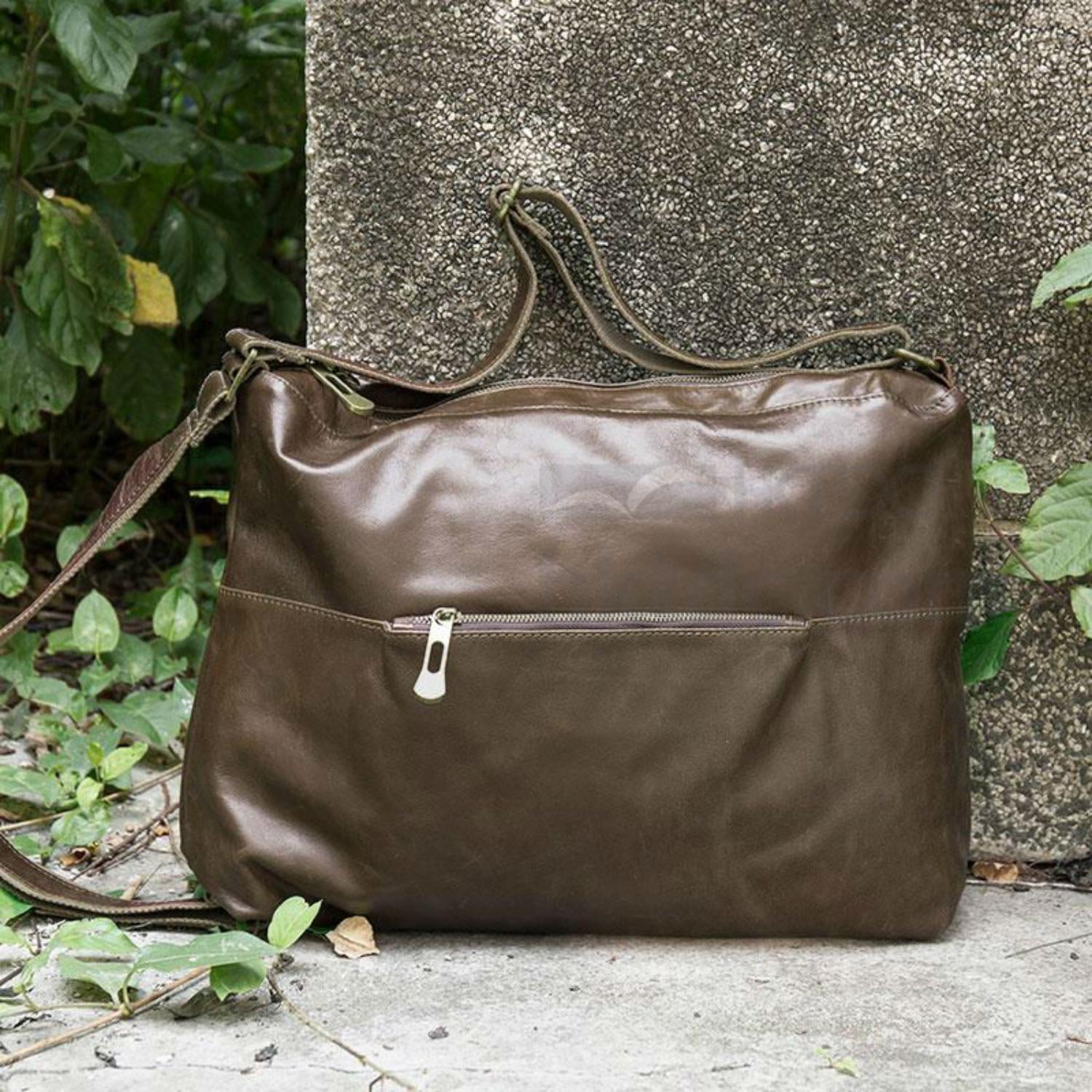 This shoulder strap bag is a dual purpose bag. The outer layer is made of leather and the inner layer is canvas. Work, travel, and shopping can all be used.