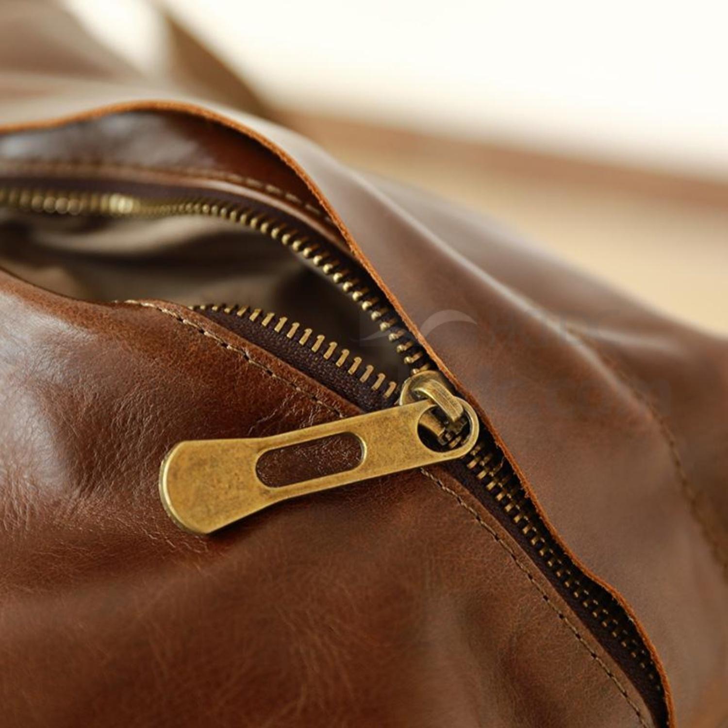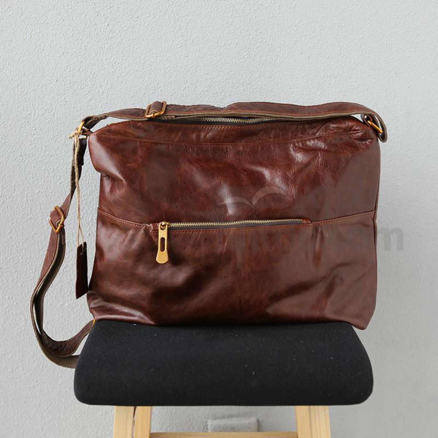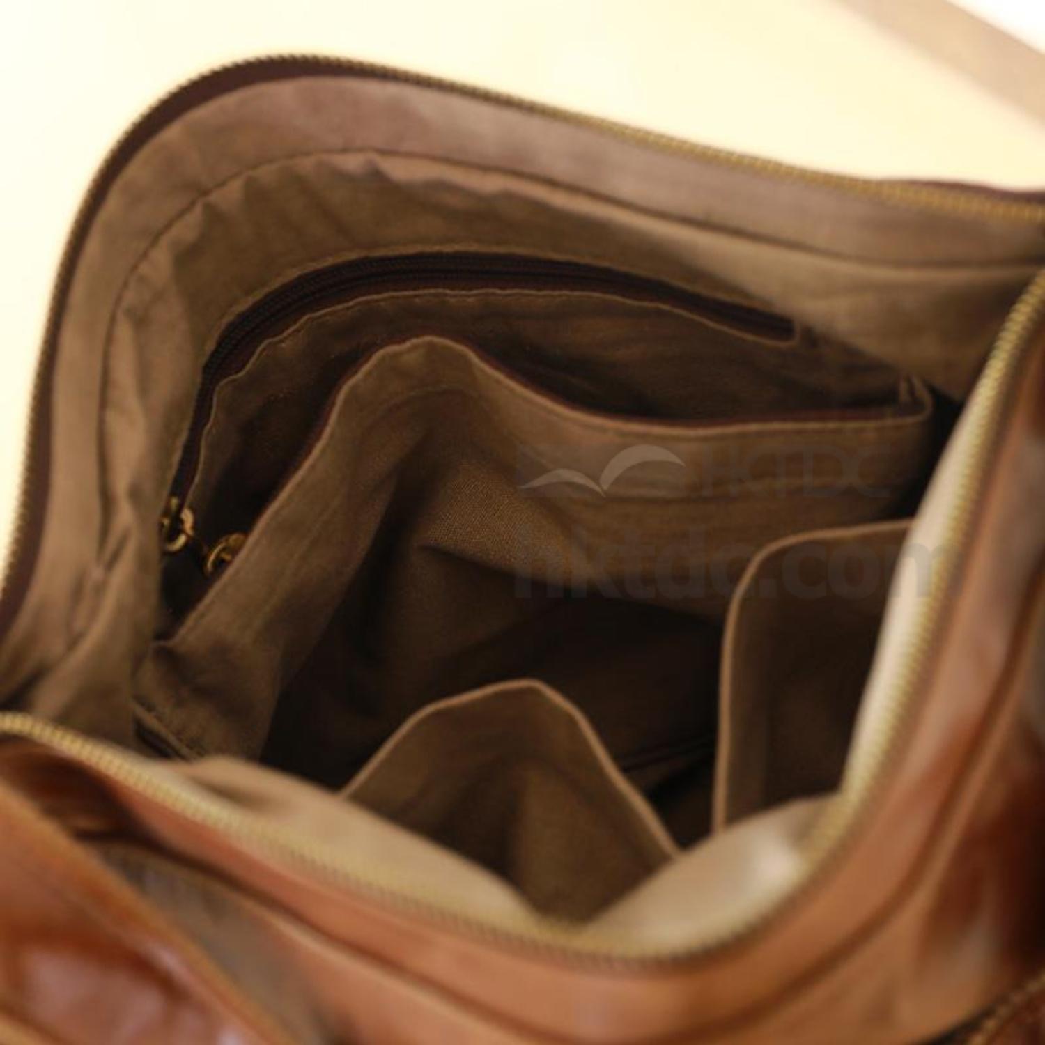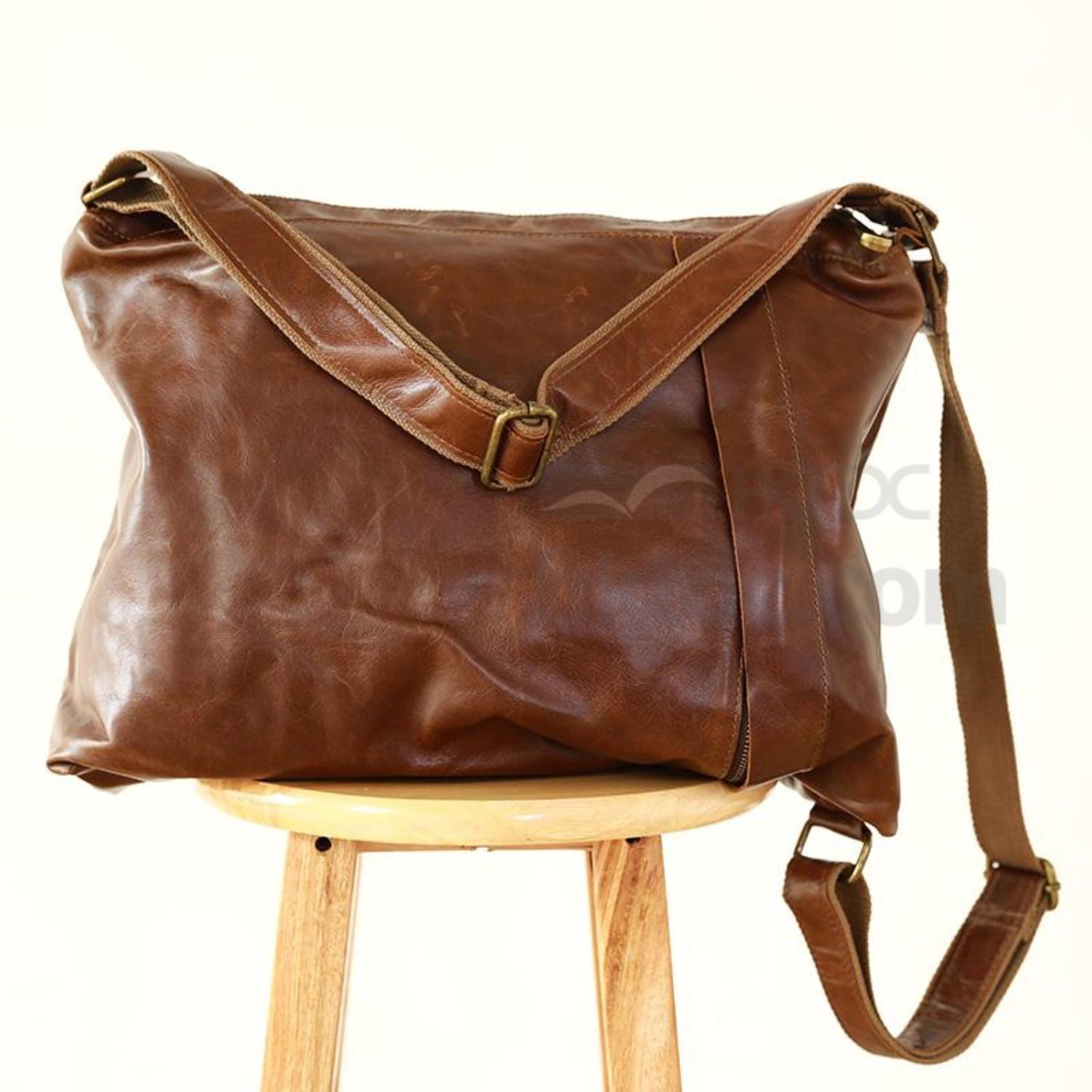 This shoulder strap bag is a dual purpose bag. The outer layer is made of leather and the inner layer is canvas. Work, travel, and shopping can all be used.