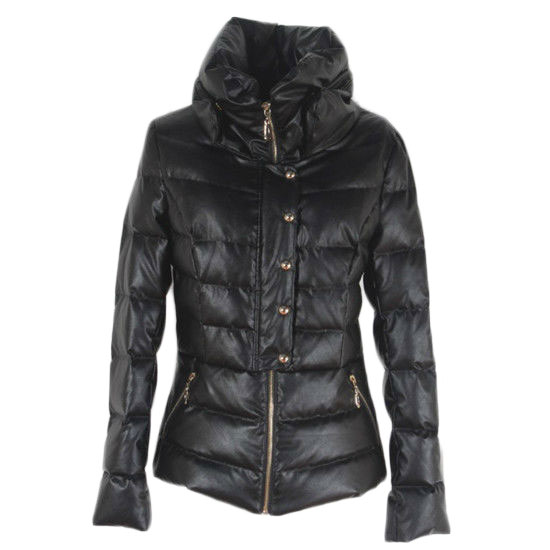 This is a down jacket with a trendy and fashionable design. It comes in a plain color with golden buttons and zips. This down jacket surely is a must-have addition to your wardrobe.