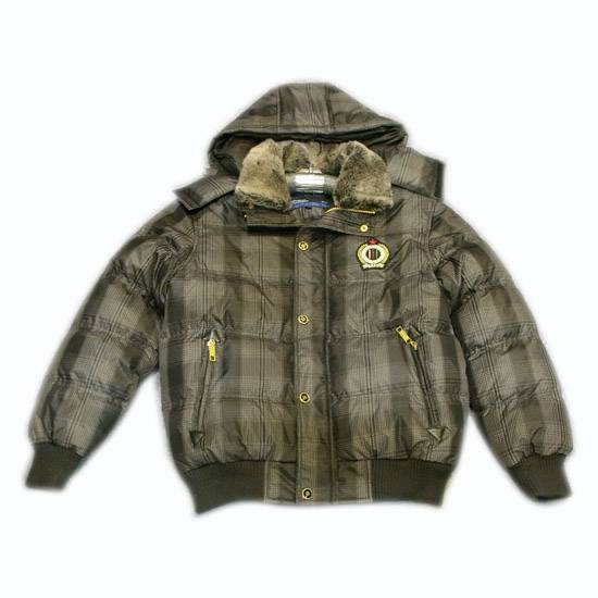 The jacket features a imitation leather collar, a checkered pattern and a badge on the chest. The material is of high quality for keeping you warm. It is very easy for mix and match.