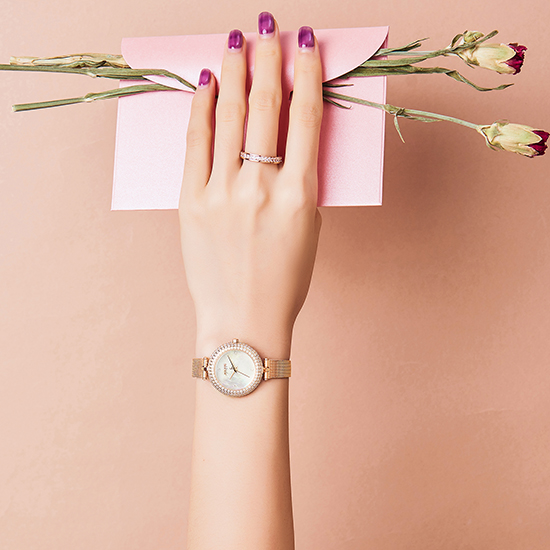 Rose gold case & band.