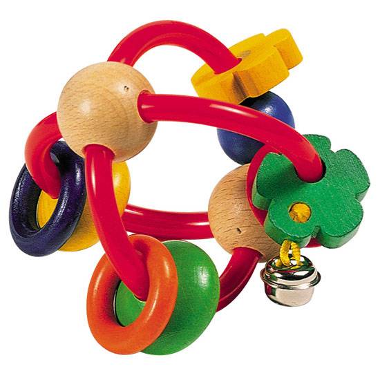 This rattle is specially designed for babies. It is decorated with colorful flowers, rings and a bell. The rattle can largely strengthen the color perception of kids