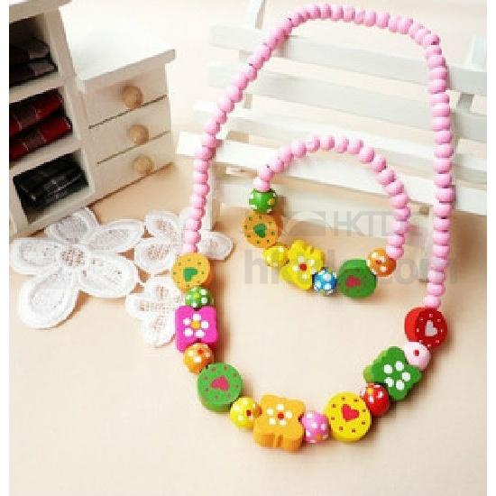 Wooden bean necklace on header card