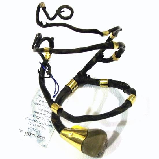 The wooden bracelet is made of bended natural wood branches to give artistic appeal. It comes with gold-plated connecting bands for added style. Add antique flair to your look with this unique wooden bracelet.