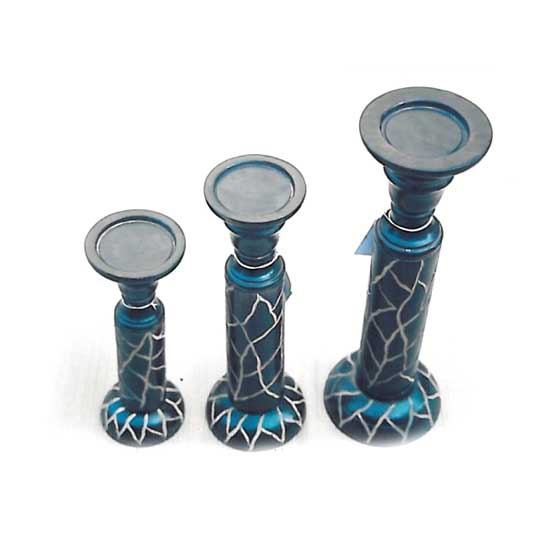 Showcased is a series of artistic candle holders made of mango wood. The delicate stained patterns give an exotic touch. Spice up your home decor simply with these candle holders.