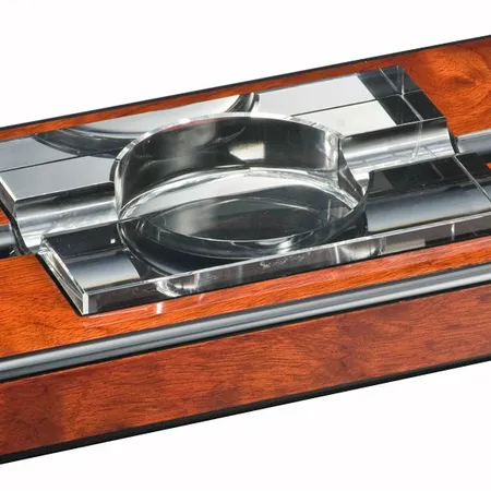 Wooden cigar ashtray in bubinga wood veneer finish, coated in luxurious piano finish.