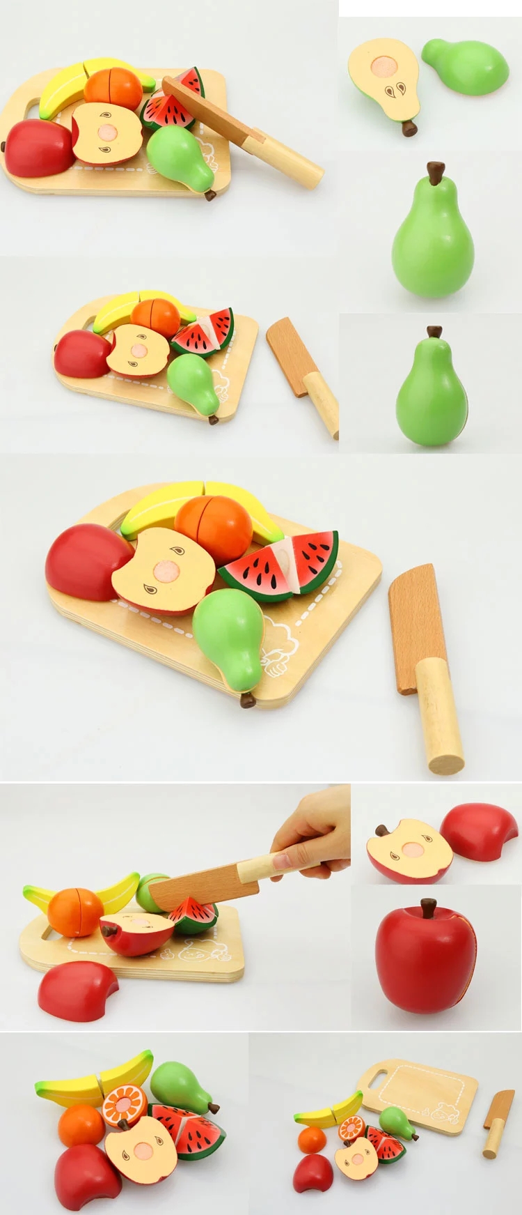 Prepare a bowl of fresh fruits for your stuffed friend with this wooden cutting toy set. Each beautifully painted fruit is connected by a sturdy hook and loop fastener to imitate the real experience of chopping and slicing. Just grab your wooden knife and set the fruits all over the cutting board to sharpen your cookery skills.
