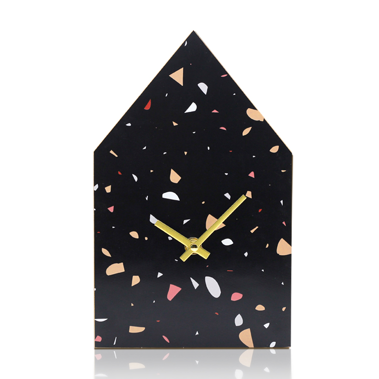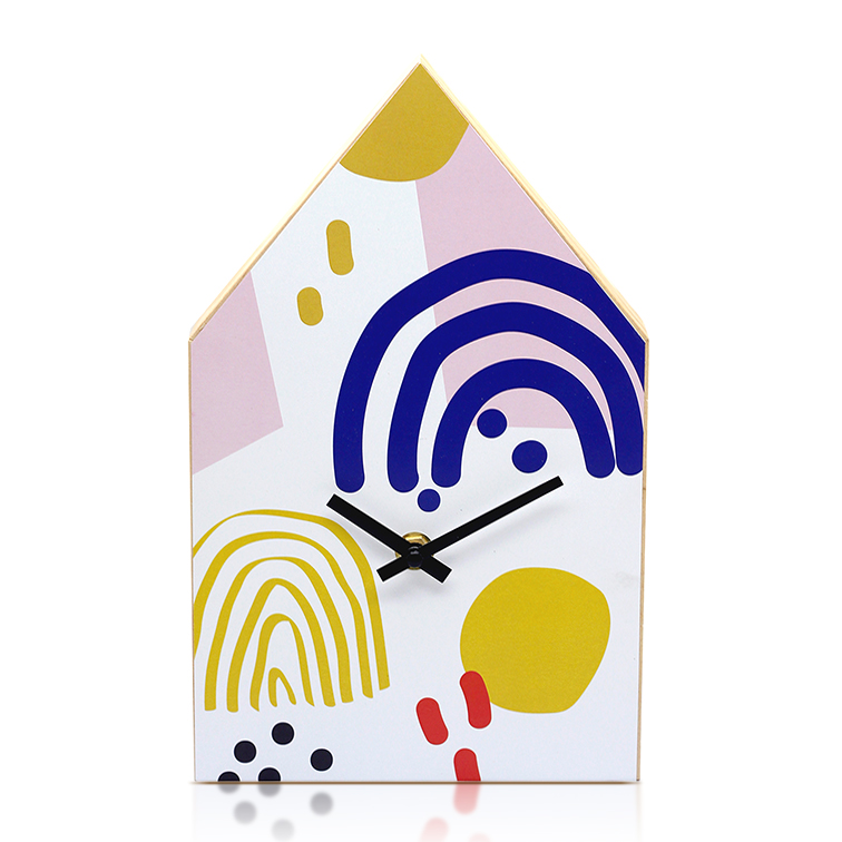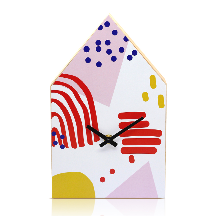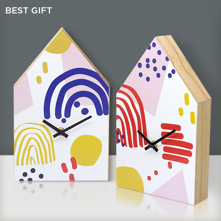 - Abstract geometric cabin wooden desk clock quiet sweeping second versatile art fresh custom clock