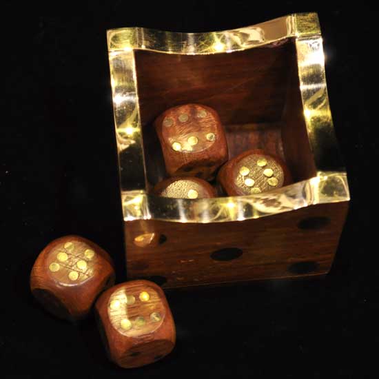 Highlighted is an ornate dice set that is crafted with high-quality sheesham wood material. This stylish wooden dice set comes with a solid wooden dice container. This excellent dice set makes the perfect gift for stylish individuals.