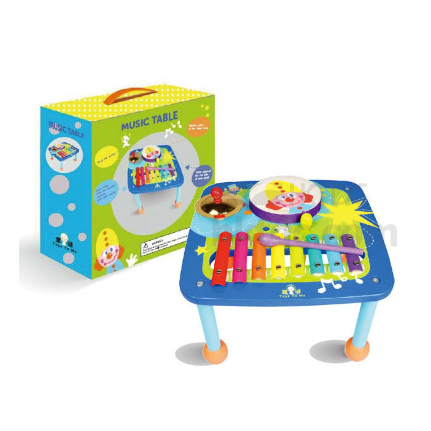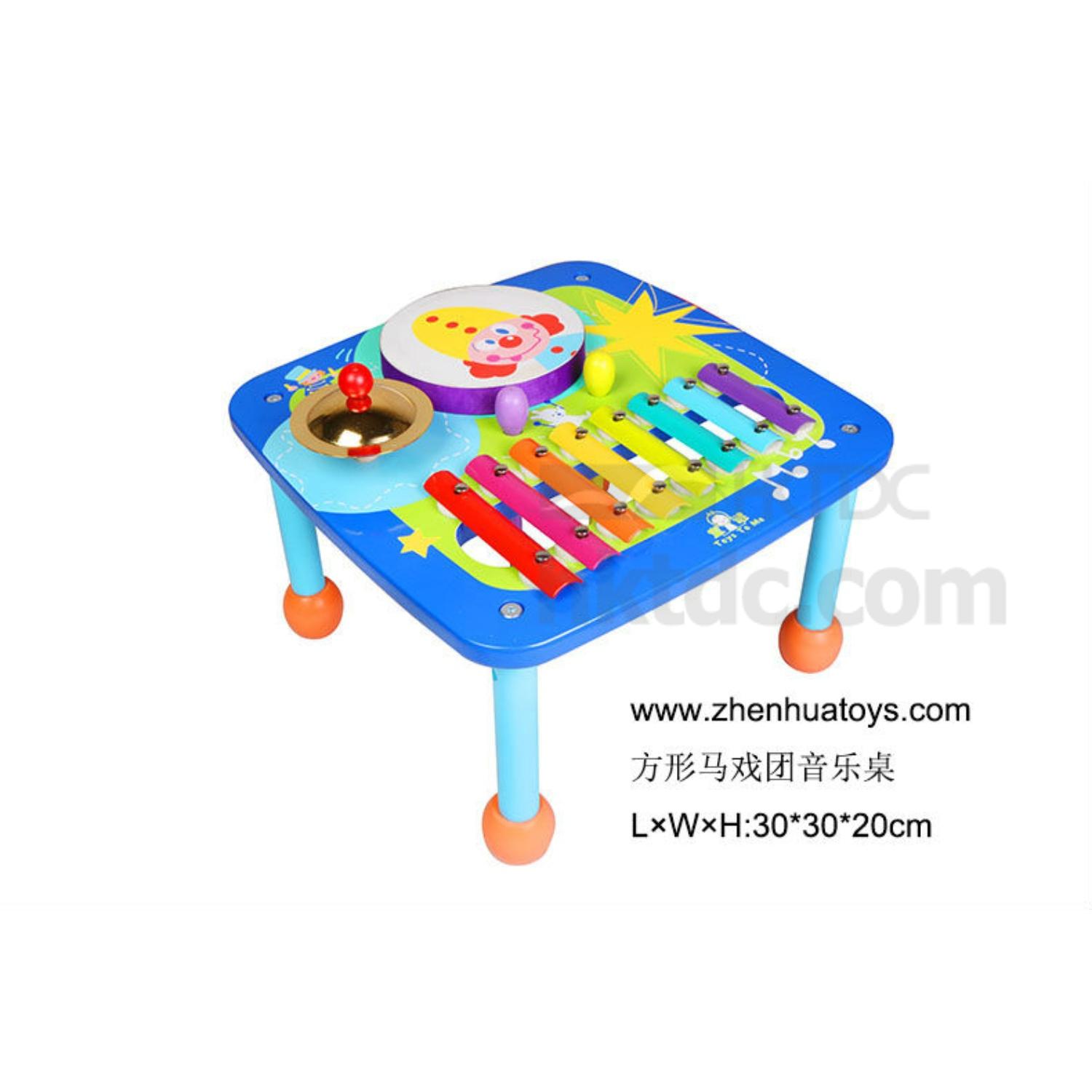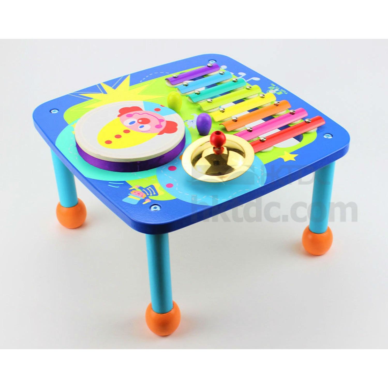 This wooden musical table comes in a rectangular design and has a colorful exterior. It has a xylophone, a guiro, a drum, a cymbal and two beaters for kids to play with and have fun. The musical table can keep kids entertained for a long time and is perfect for developing their musical talents.