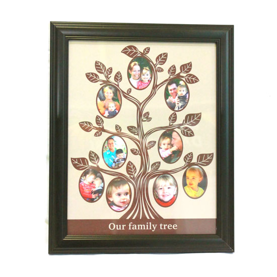 As shown is a photo frame which is constructed of stout wood. It is completed with a rectangular portrait. This piece is assembled with a solid brown frame which looks decent.