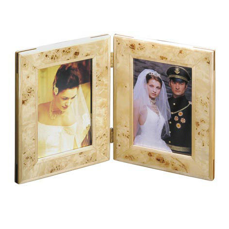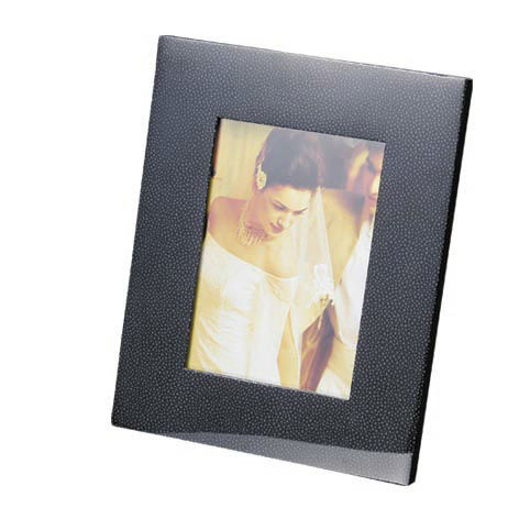 PE piano finish photo frame in genuine poplar veneer for two 4" x 6" photos / PE piano finish photo frame in black shagreen pattern for one 8" x 10" photo.