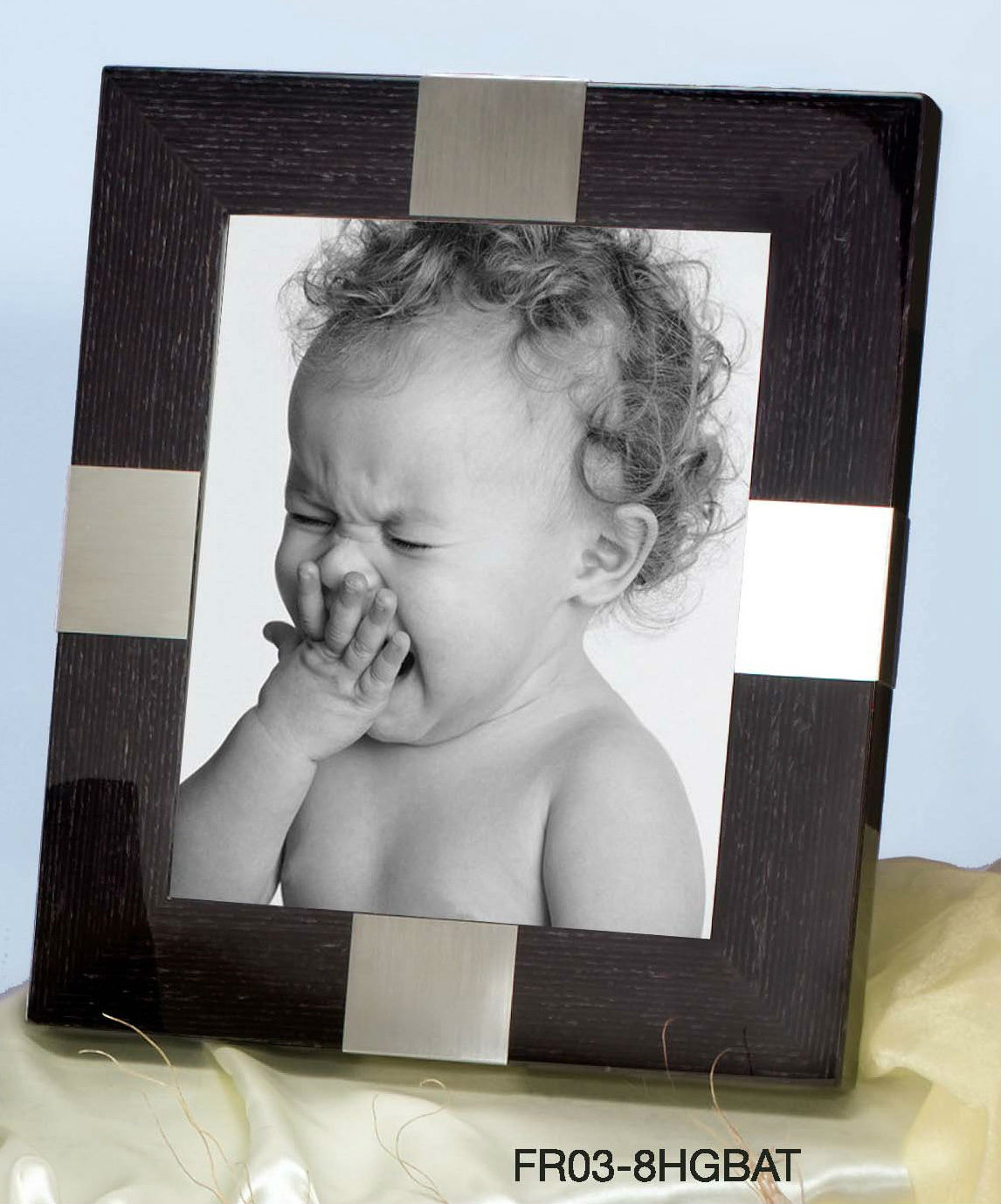 Wooden photo frame laminated with veneer and decorated with stainless Steel.