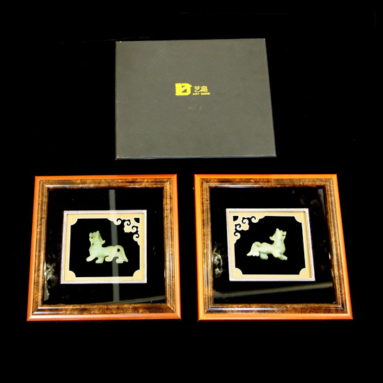 Showcased is a decent photo frame with a patterned wooden frame. The artistic 3D graphic adds a touch of uniqueness. Spice up your living room simply with this Chinese-styling picture frame.